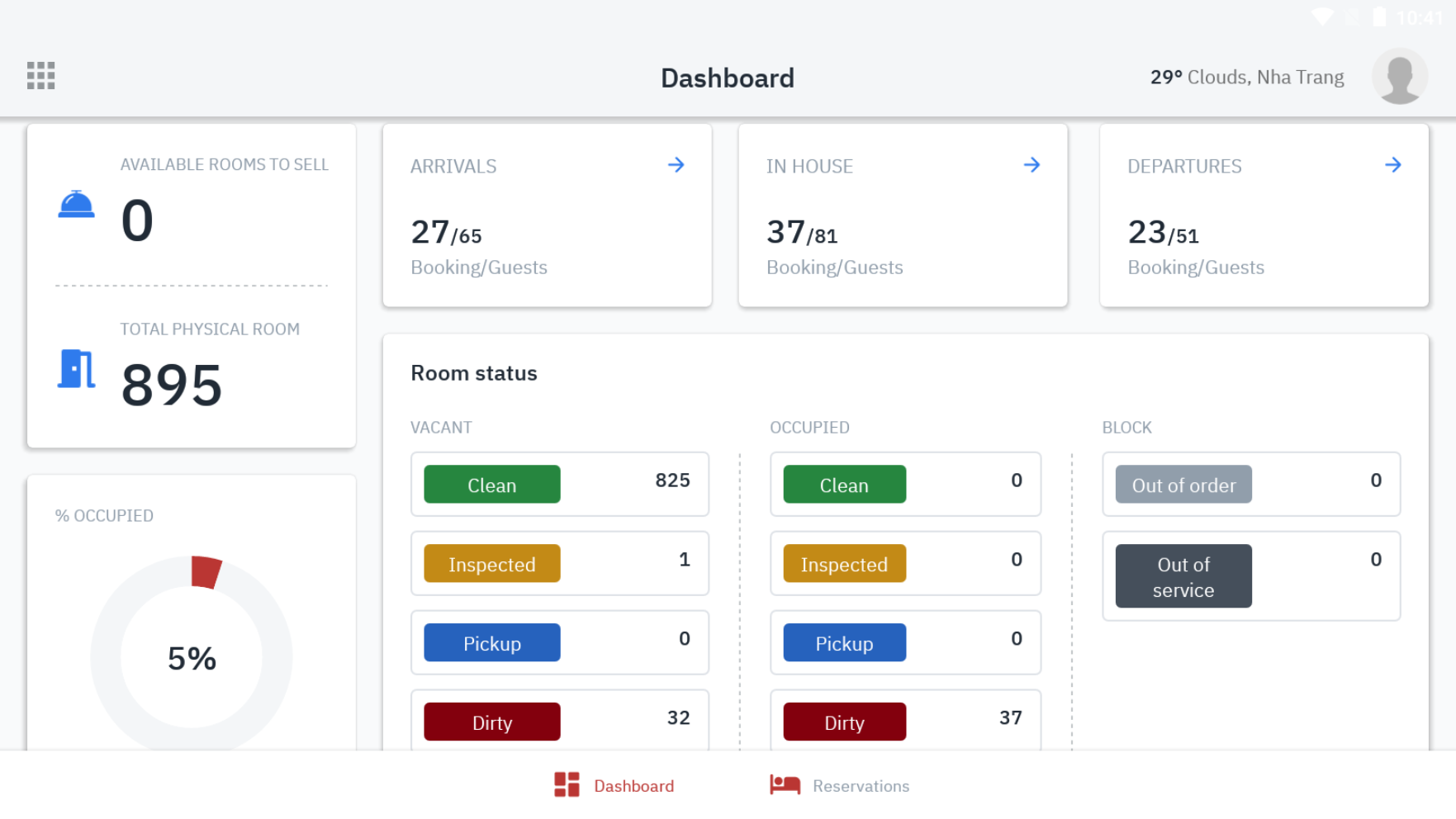 អេក្រង់បង្ហាញសេចក្តីសង្ខេបនៃព័ត៌មាន និងប៉ារ៉ាម៉ែត្រដែលបានធ្វើបច្ចុប្បន្នភាពចុងក្រោយបំផុតរបស់សណ្ឋាគារនៅពេលបច្ចុប្បន្ន |