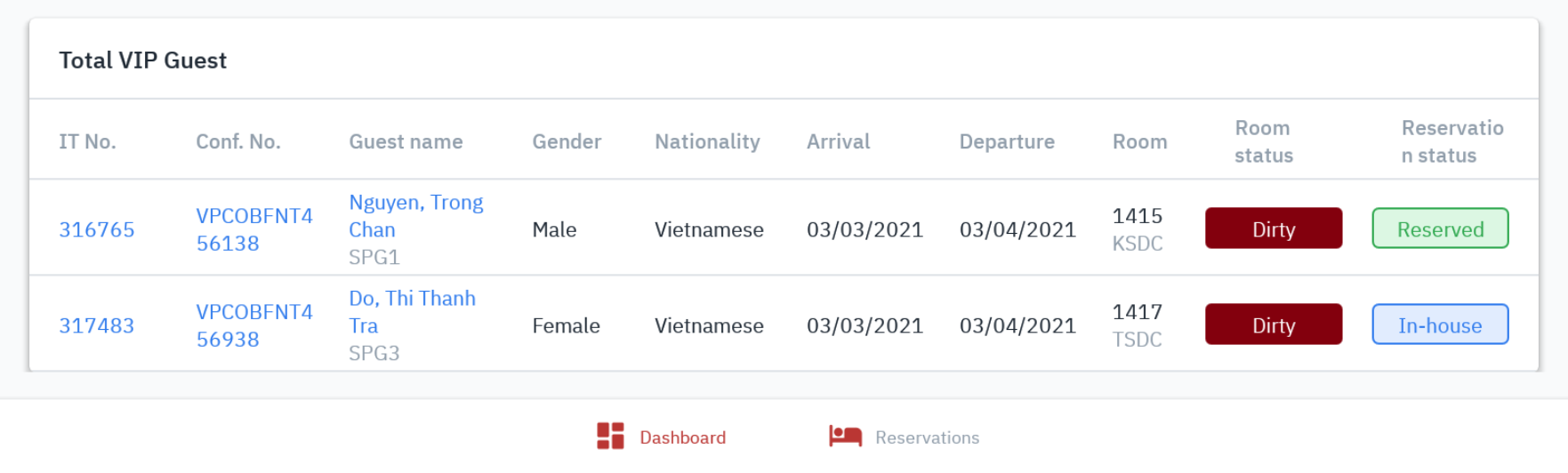 ![]() [Today VIP guest] – បញ្ជីភ្ញៀវ VIP![]() បញ្ជីនៃការកក់បន្ទប់របស់ភ្ញៀវ VIP នៅក្នុងថ្ងៃបច្ចុប្បន្ន
