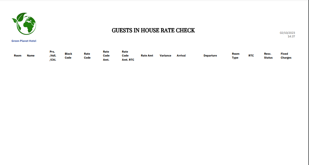 របាយការណ៍ប្រៀបធៀបតម្លៃបន្ទប់ (Guest in-house rate check) |