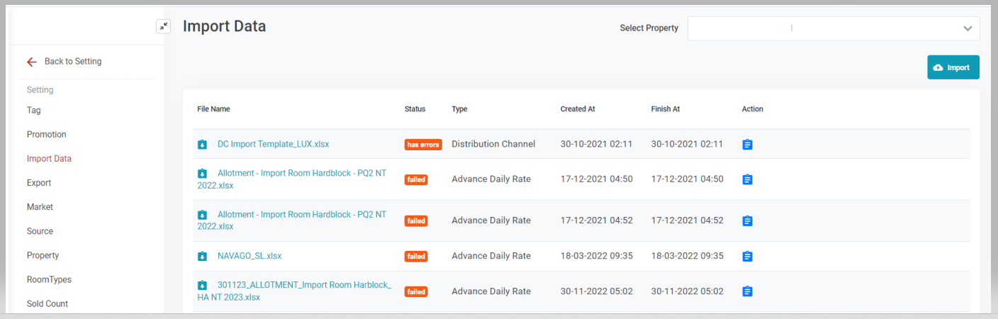 Log in – Application - Rate Service Management – Setting - Import Data |