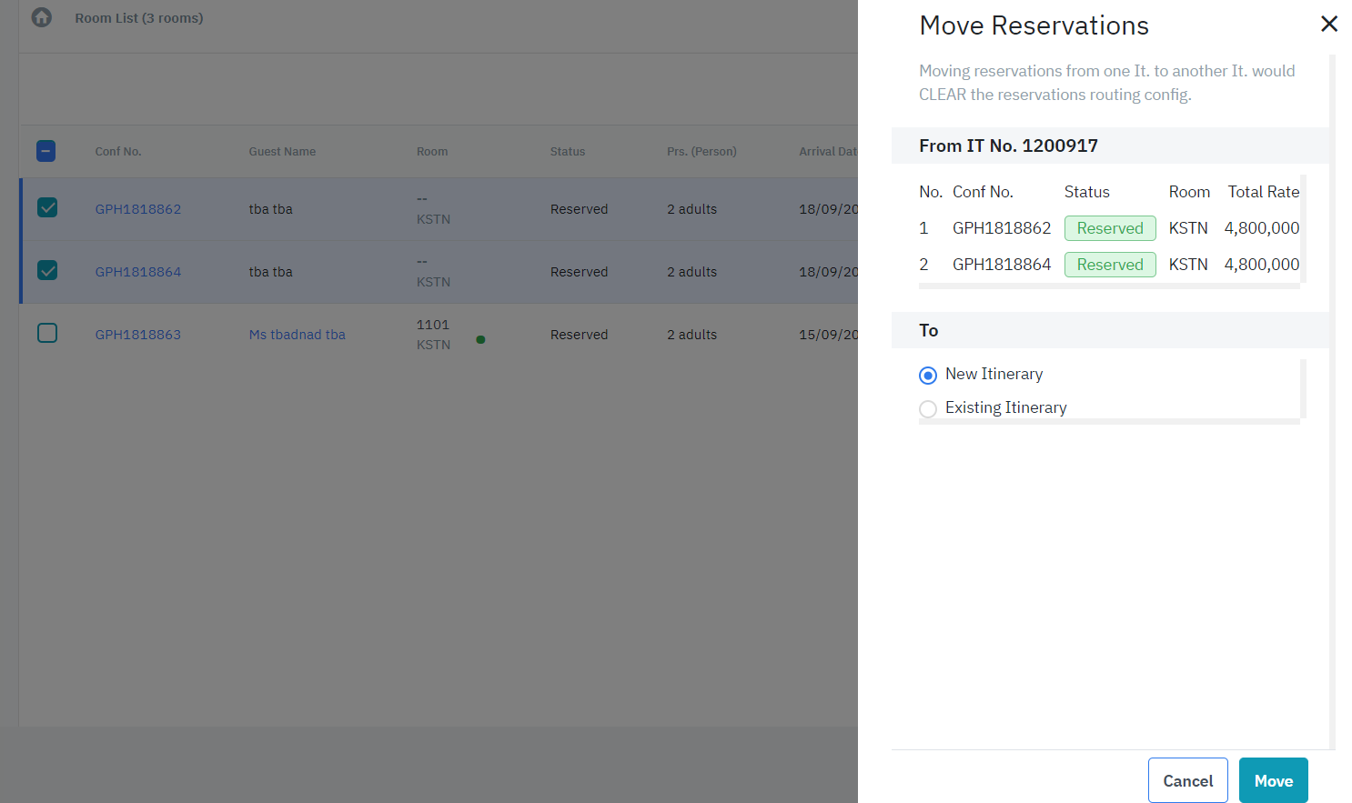 Move Reservations: បំបែក ឬផ្សំការ Booking ពីលេខកូដដំណើរការបច្ចុប្បន្នទៅលេខកូដធ្វើដំណើរថ្មី 1 ឬបញ្ចូលទៅក្នុងលេខកូដ 1 ដំណើរការដែលមានស្រាប់ 1៖