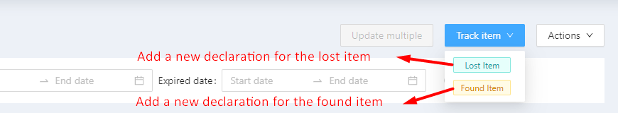 1. តាមដាន/Track Item: បង្កើតលេខសម្គាល់មួយចំនួន![]() Lost Item/វត្ថុរាយការណ៍ថាបាត់ ![]()