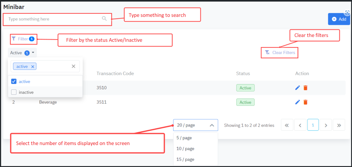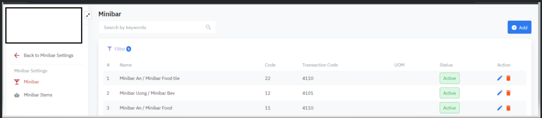 ![]() បន្ថែមថ្មី Minibar/ កែសម្រួលមួយ Minibar![]() ![]()