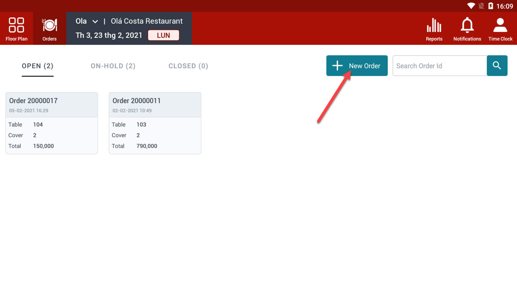 ជំហាន 1: ជ្រើសរើសតុត្រូវកត់សម្គាល់ការបញ្ជាទិញ -> View Order ![]() ជំហាន 2: Click New Order ដើម្បីបង្កើតការបញ្ជាទិញថ្មីនៅលើតុ ![]() |