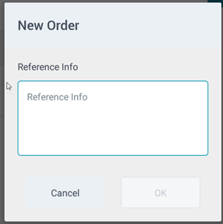 Bước 1: Click New Order ![]() ជំហាន 2: បញ្ចូលព័ត៌មានការបញ្ជាទិញ (Reference Info): អាចបញ្ចូលលេខបន្ទប់, ឈ្មោះភ្ញៀវ, រាល់ព័ត៌មានដើម្បីរំលឹកអំពីការបញ្ជាទិញ,… ![]() ជំហាន 3: Click OK ដើម្បីបង្កើតការបញ្ជាទិញ. ព័ត៌មានបញ្ជាទិញត្រូវបានពិនិត្យមើលនៅ menu Orders, និង heading ពណ៍ក្រហមដូចដែលបានរៀបរាប់ក្នុងបញ្ជីបញ្ជាទិញ |