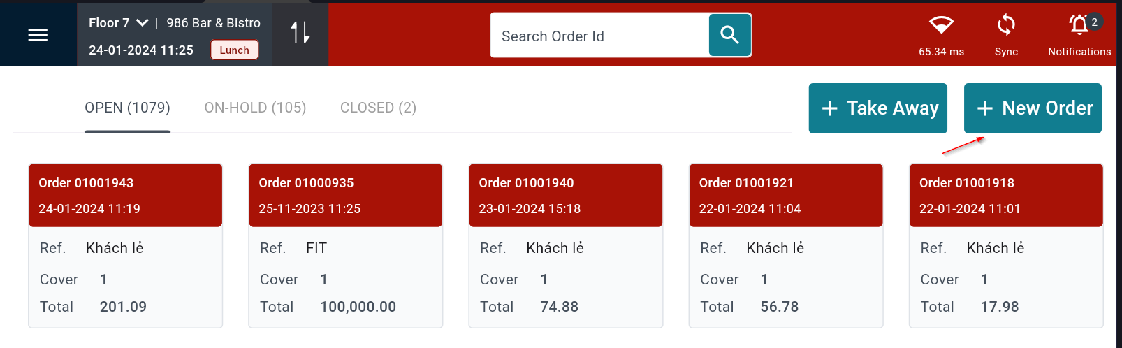 ជំហាន 1: ជ្រើសរើសតុដែលត្រូវការកត់បញ្ជាក់ការបញ្ជាទិញ -> View Order ![]() ជំហាន 2: Click New Order ដើម្បីបង្កើតថ្មីការបញ្ជាទិញនៅលើតុ |