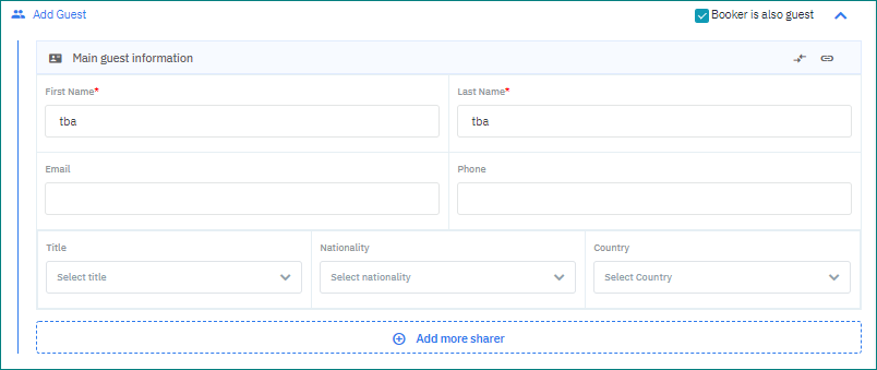 [Sharer Information] – ភ្ជាប់ព័ត៌មានភ្ញៀវទៅជាមួយ៖ចុច “Add more sharer“ ដើម្បីបញ្ចូលព័ត៌មានភ្ញៀវនៅជាមួយ ![]()