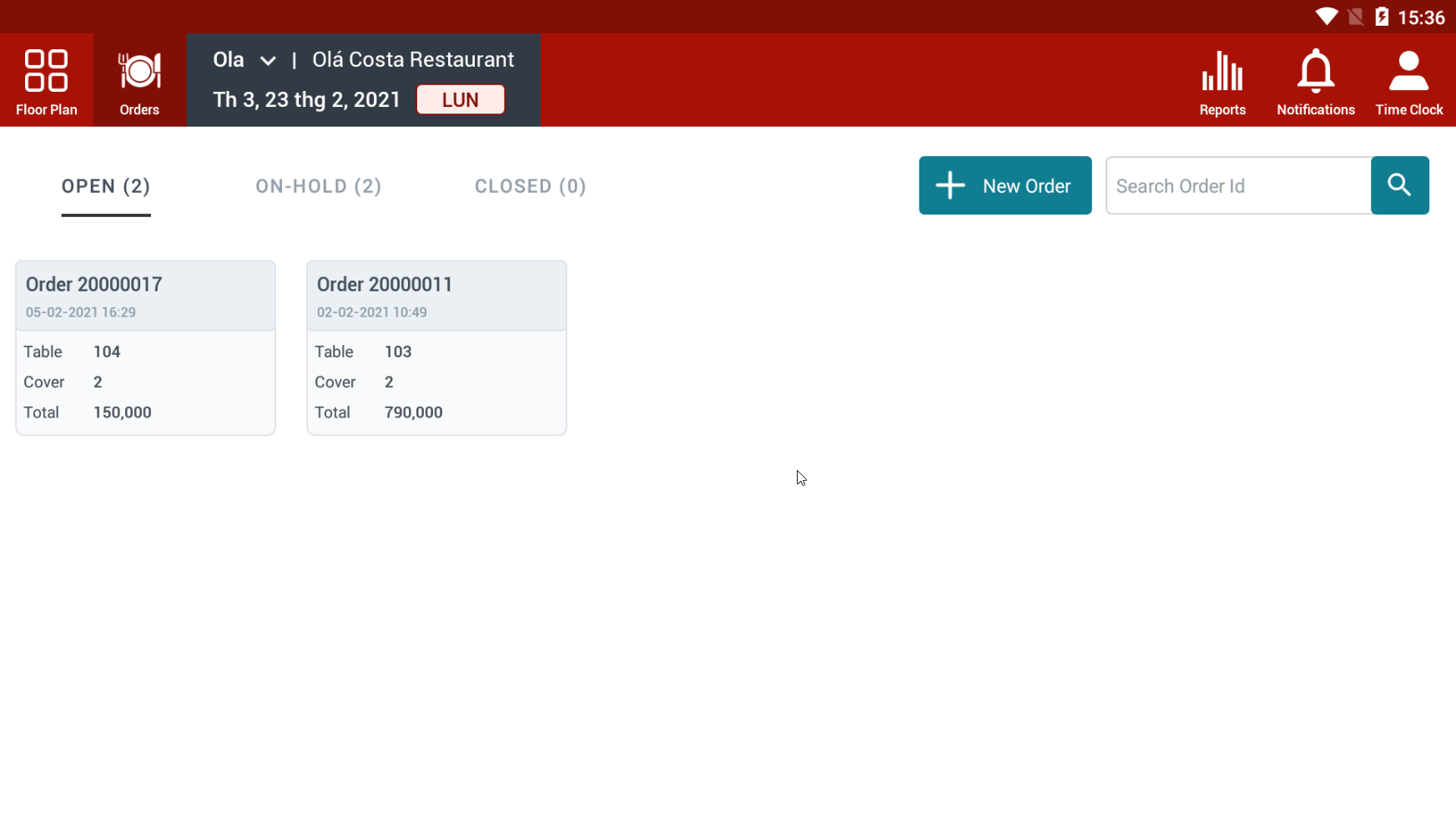 2. ការបញ្ជាទិញទទេមិនទាន់មាន items, បង្ហាញនៅ tab “On-hold” ![]() 3. ការបញ្ជាទិញត្រូវបានបង្កើតឡើងដោយភ្ញៀវតាមរយៈ app Vinpearl Experience ![]() |