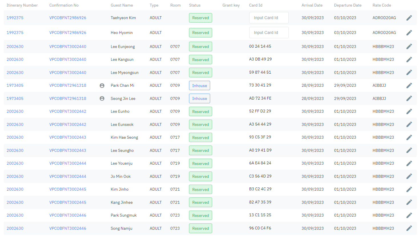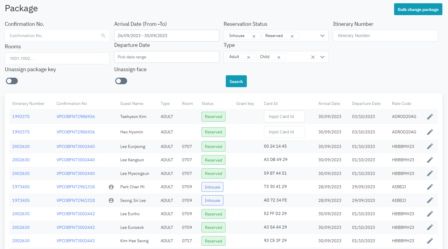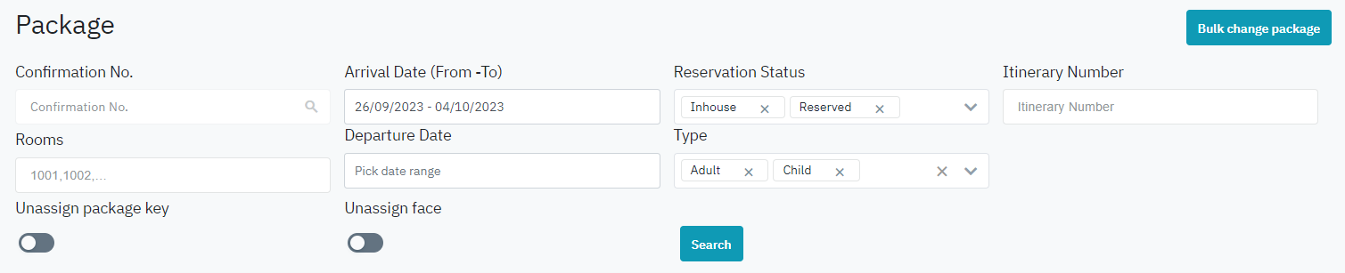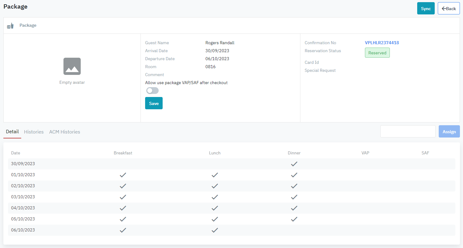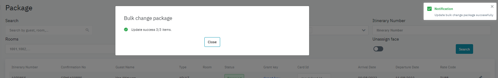 អេក្រង់មានមុខងារក្នុងការស្វែងរក មើលព័ត៌មានលម្អិត, ផ្លាស់ប្តូរ, កាត់កាតកញ្ចប់សេវាកម្មយ៉ាងឆាប់រហ័ស និងកាត់កាតបន្ទប់សម្រាប់ភ្ញៀវ |