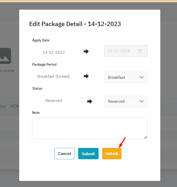 កញ្ចប់សេវាកម្មអាហារមានពេលវេលាជាក់លាក់អាស្រ័យលើបទប្បញ្ញត្តិរបស់សណ្ឋាគារ។ ក្នុងករណីលើសម៉ោងកំណត់ ប្រព័ន្ធនឹងផ្ទេរអាហារទៅស្ថានភាពមិនប្រើ |