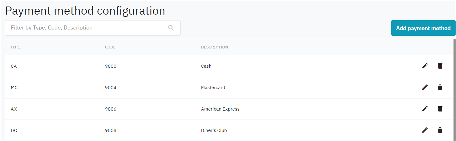 បន្ថែមថ្មីលេខកូដទម្រង់ទូទាត់ប្រាក់ចុច “Add Payment Method“ ដើម្បីអនុវត្តបន្ថែមថ្មីលេខកូដទម្រង់ទូទាត់ប្រាក់។![]()