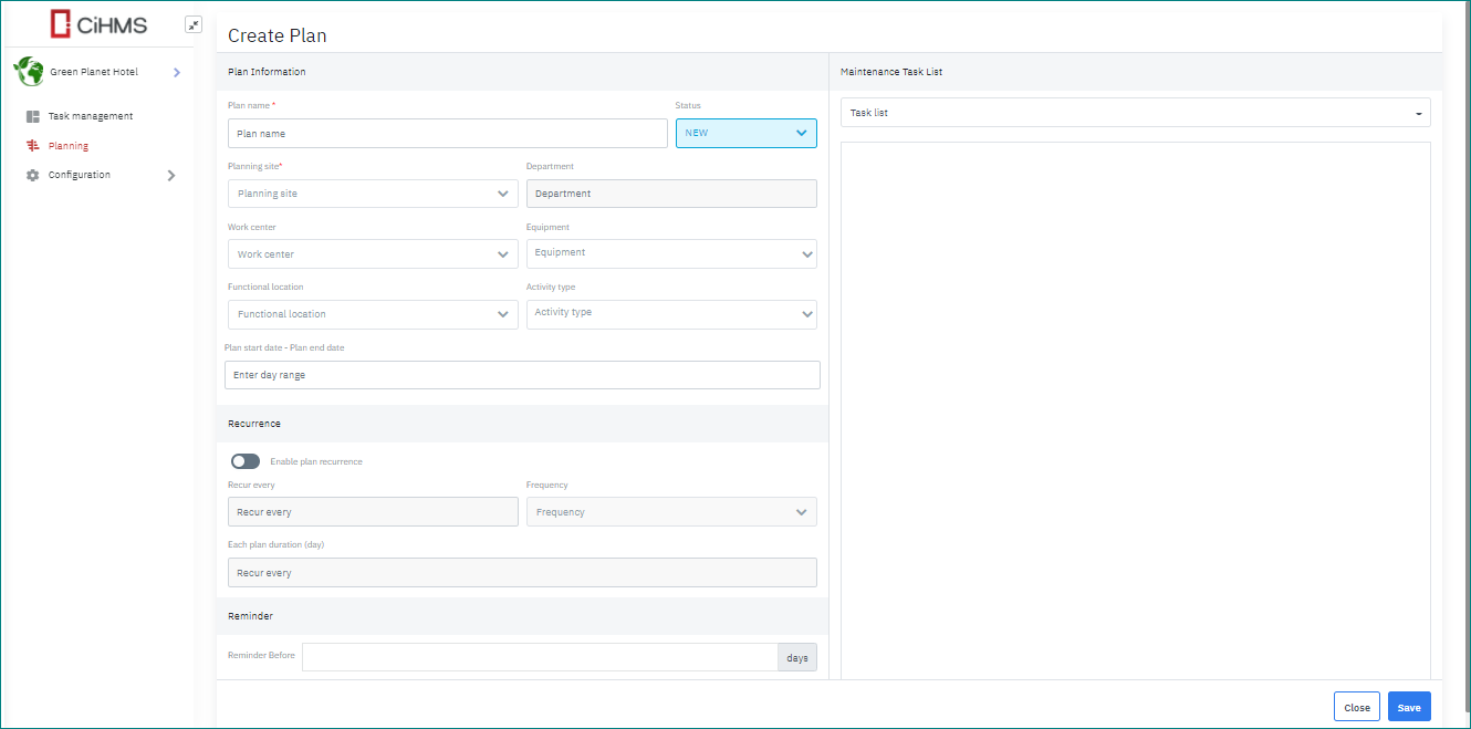 Login – Maintenance plan – Planning |