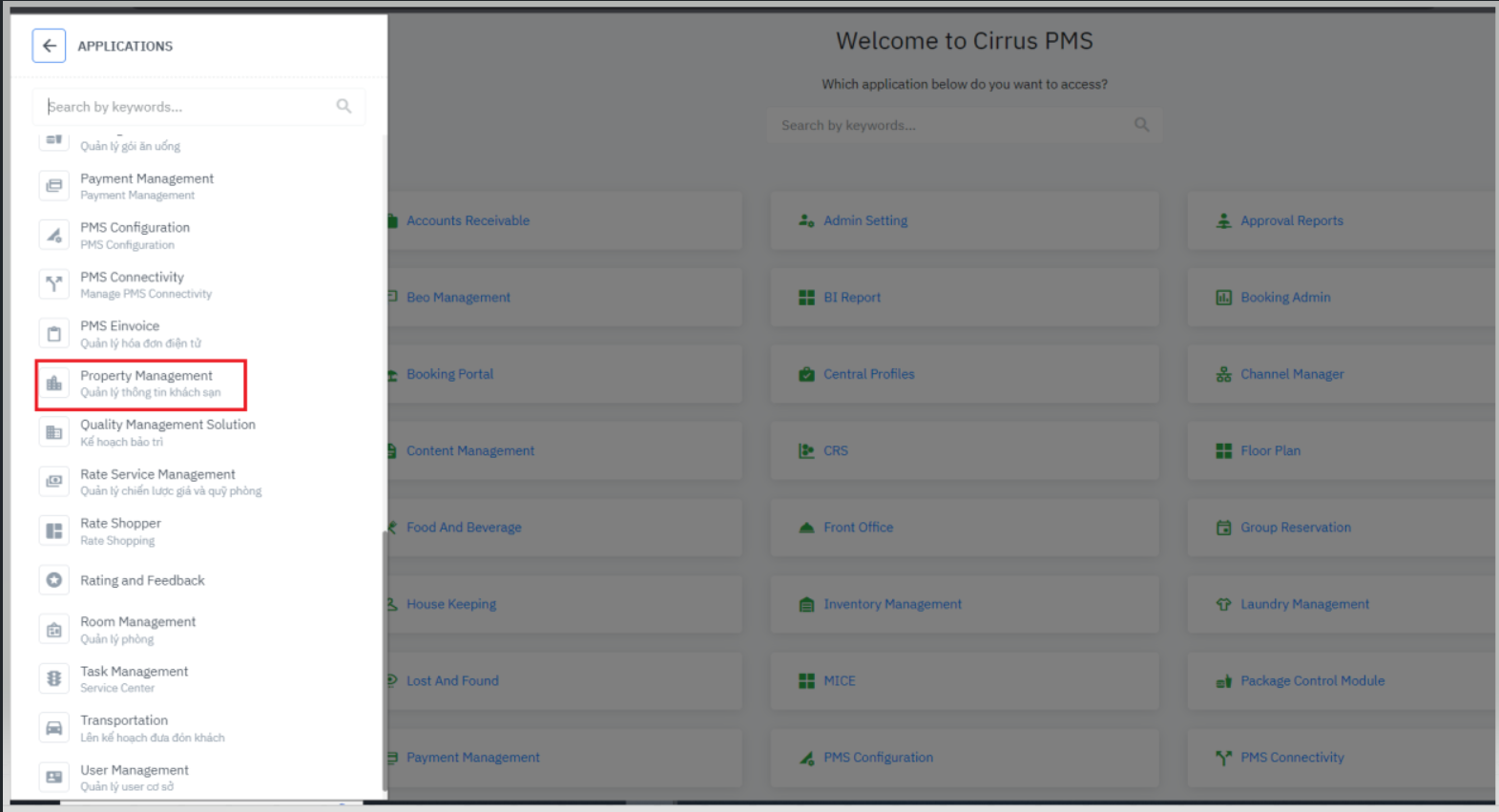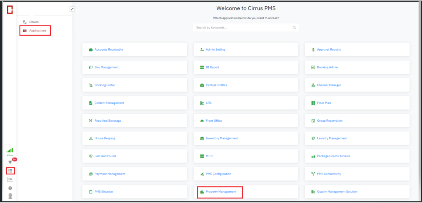 Login - Applications - Property Management ![]() ឬ click ទៅកាន់រូបតំណាង “table” - ជ្រើស Property Management ![]() |