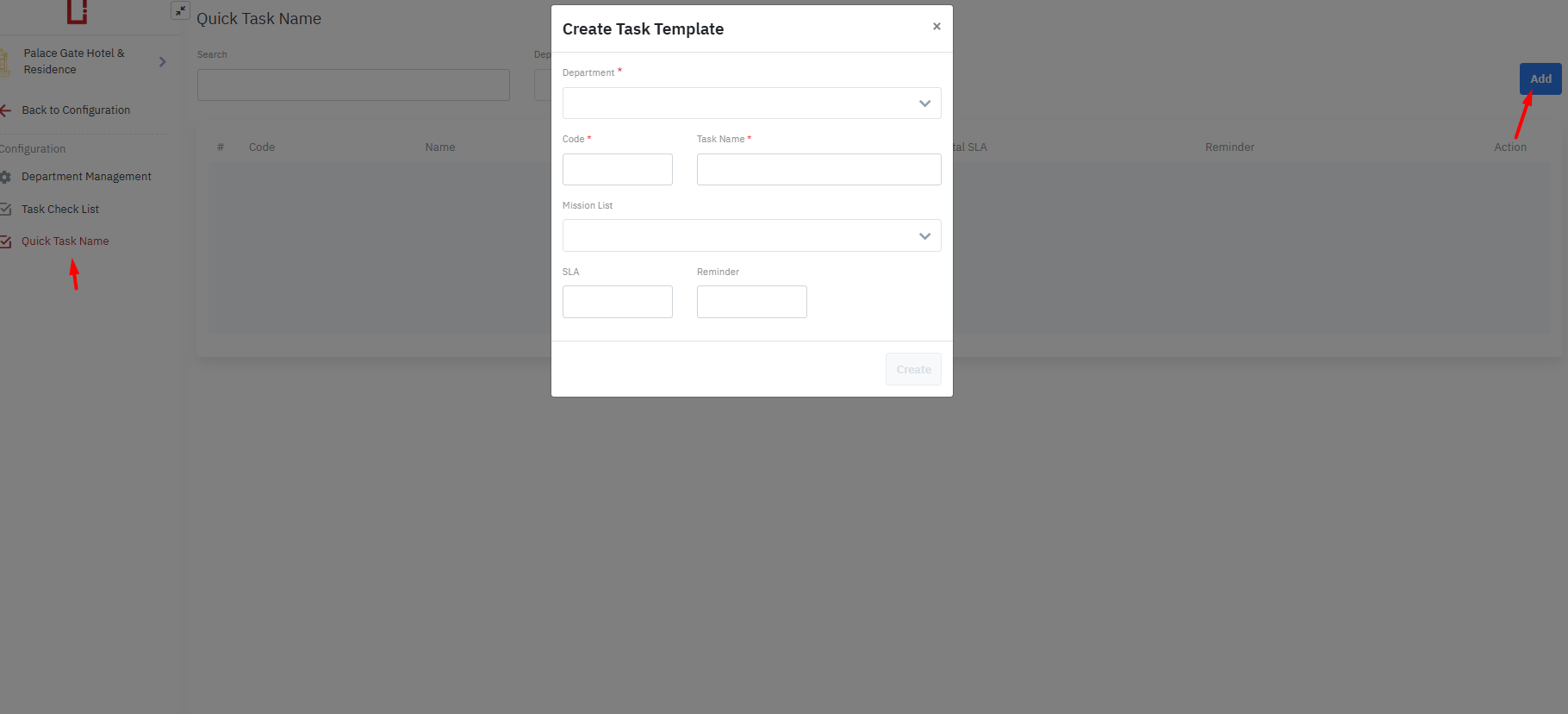 បង្កើតការងាររហ័ស ( Quick Task).ដើម្បីបង្កើតរហ័សរាល់ដើមការងារនៅលើ Task Management, user អាចត្រូវបានកំណត់ & កំណត់រចនាសម្ព័ន្ធមុន Quick Task សម្រាប់ផ្នែកនីមួយៗ គោលដៅ៖