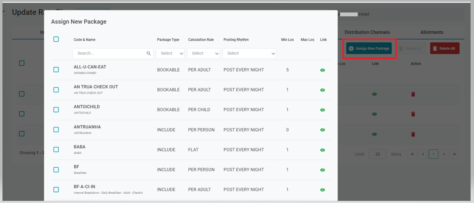 [Assign New Package] – បន្ថែម Package ថ្មីសម្រាប់លេខកូដតម្លៃ![]() តម្លៃចាស់គឺ package នឹងត្រូវបានទទួលបានពីតម្លៃមេ ដើម្បីបន្ថែម 1 ឬកញ្ចប់សេវាកម្មច្រើន បញ្ចូលលេខកូដតម្លៃ អ្នកប្រើប្រាស់អាចធីកប្រអប់នៅពីមុខលេខកូដកញ្ចប់សេវាកម្ម ដើម្បីបន្ថែមកញ្ចប់សេវាកម្មទៅលេខកូដតម្លៃ បញ្ជីកញ្ចប់សេវាកម្មដែលមិនទាន់បានអនុវត្តសម្រាប់លេខកូដតម្លៃ