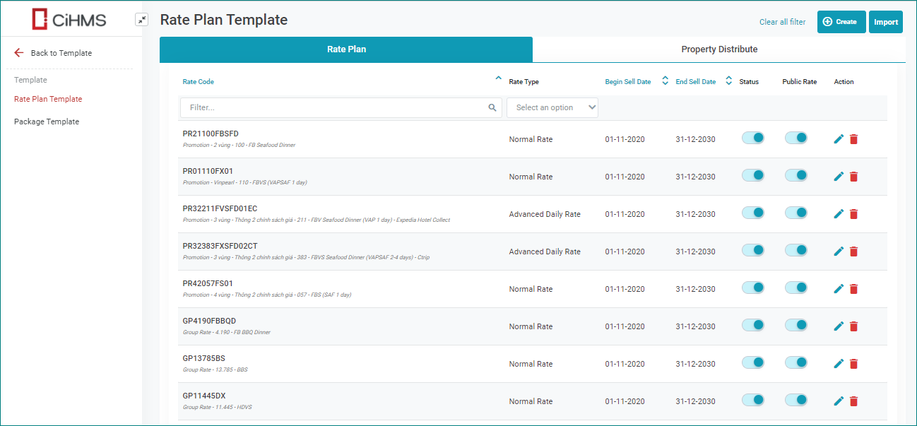 I. Rate Plan Template[Create New Rate Plan] – ជ្រើសរើសប៊ូតុង Create ដើម្បីបង្កើតថ្មី rate code ជាសិទ្ធិ Rate Global ![]()