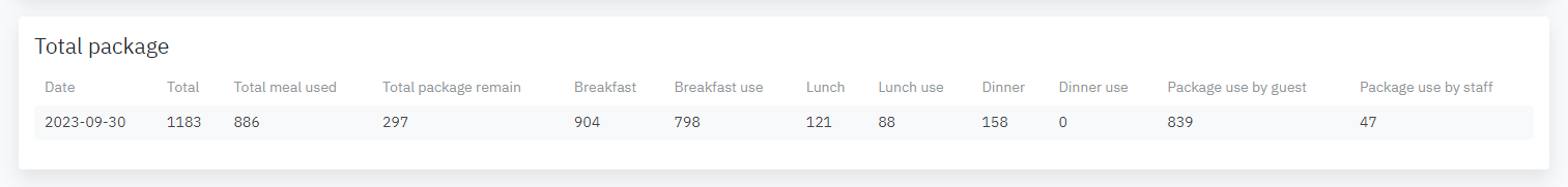 Log in – Front Office – អាហារ/ កញ្ចប់ (Meal/ Package) – ចុច “Report” |