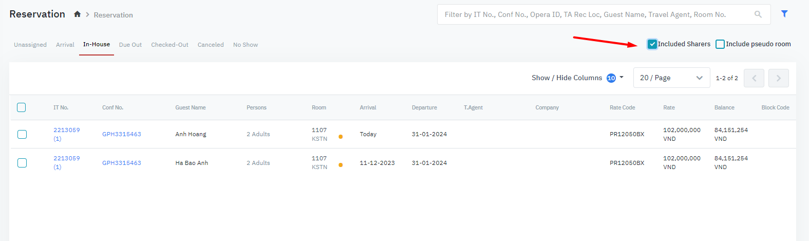 ប្រព័ន្ធអនុញ្ញាតឱ្យអ្នកប្រើស្វែងរកដូចជា IT Number, Room Number, Confirmation,…តម្លៃច្រើនក្នុងពេលតែមួយ (តម្លៃអតិបរមា 10), តម្លៃត្រូវបានបំបែកដោយសញ្ញាក្បៀស “,” នៅលើអេក្រង់ Booking ដូចបង្ហាញខាងក្រោម៖