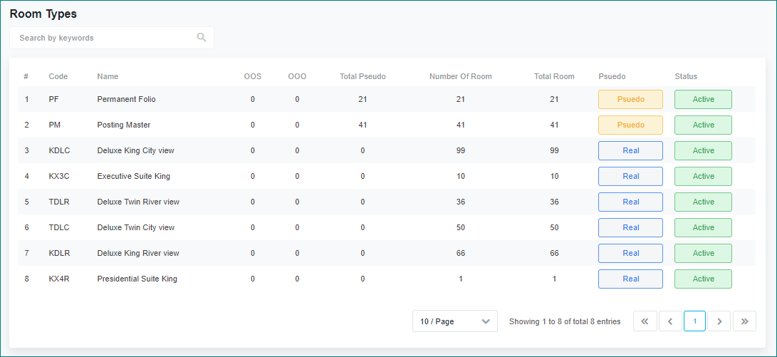 បង្ហាញព័ត៌មានអំពីប្រភេទបន្ទប់ និងចំនួនបន្ទប់សរុបនៃប្រភេទបន្ទប់នីមួយៗ ដែលបានកំណត់រចនាសម្ព័ន្ធនៅកន្លែងនីមួយៗ។ |