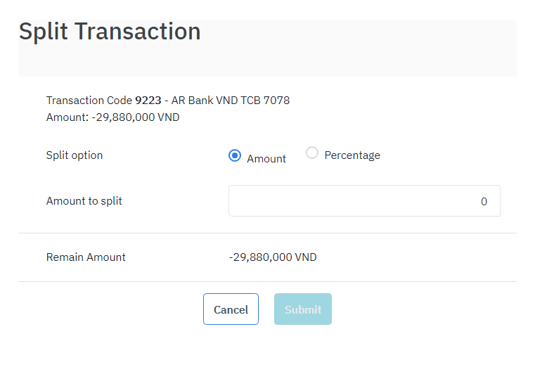 មុខងារអនុញ្ញាតឱ្យបំបែកប្រតិបត្តិការតាមចំនួនទឹកប្រាក់ ឬតាមអាត្រា % |