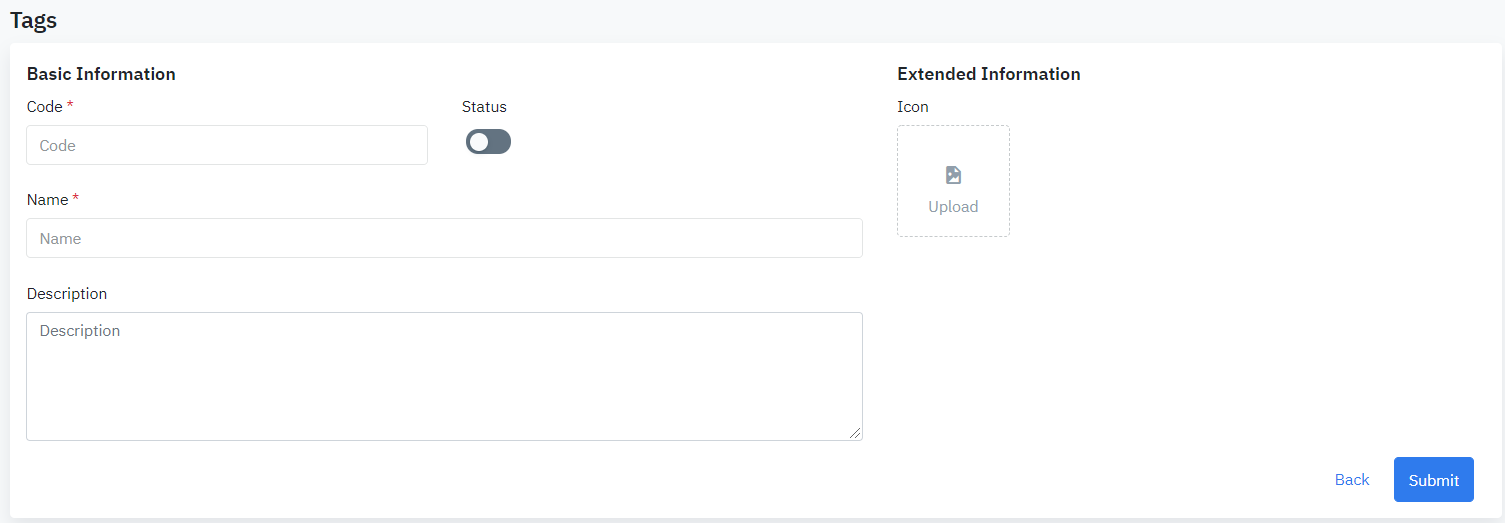 Log in >> Admin setting >> Setup >> General >> Tags |