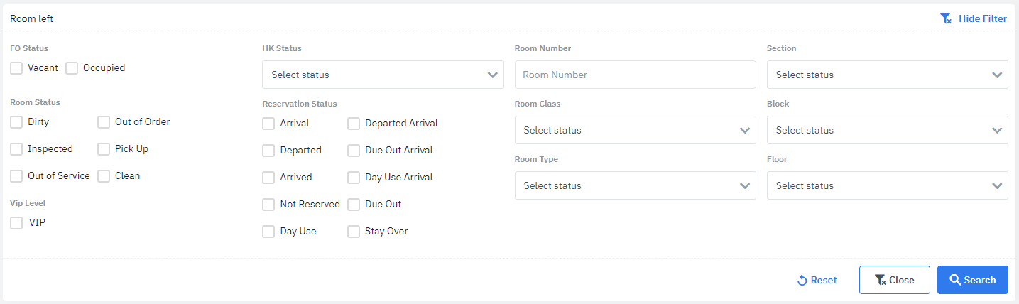 ជំហាន 2: ចុច “Filter” ដើម្បីស្វែងរកបញ្ជីបន្ទប់ដែលត្រូវការបង្កើតកាលវិភាគសម្អាត [Filter] – លក្ខខណ្ឌស្វែងរក ![]()