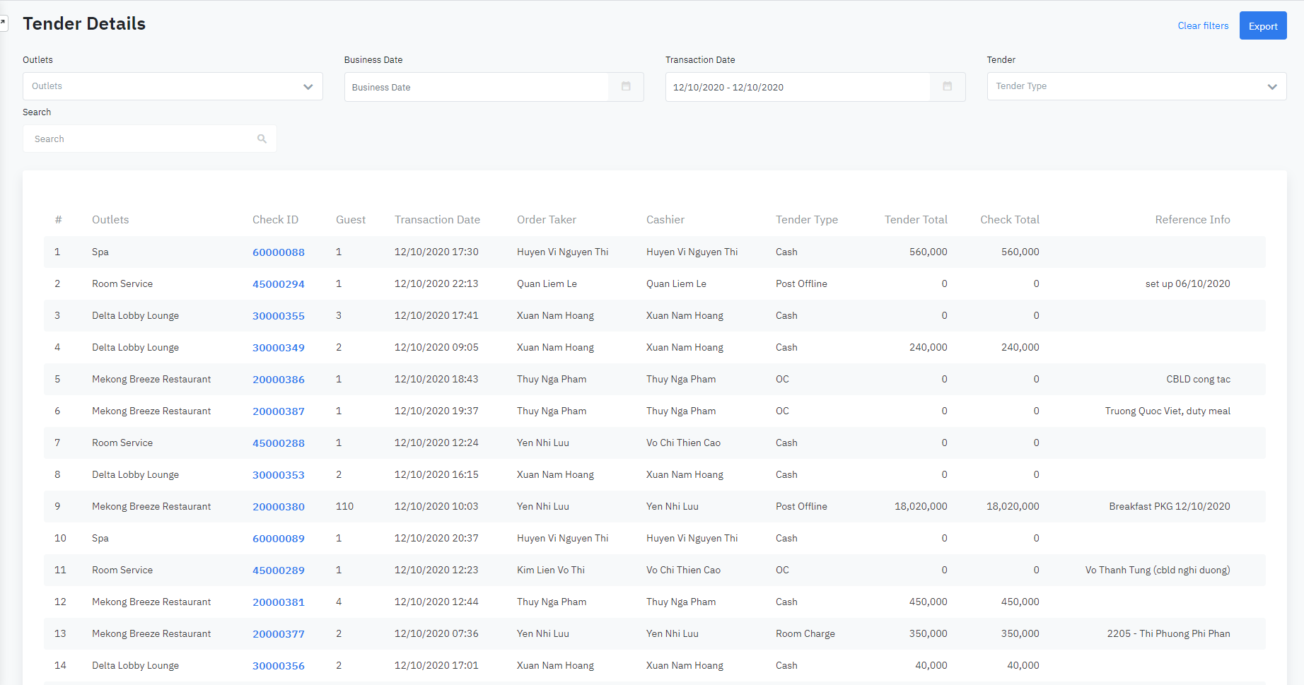 Log in - Food and Beverage - Reports - Tenders - Tenders Details |