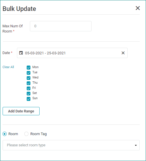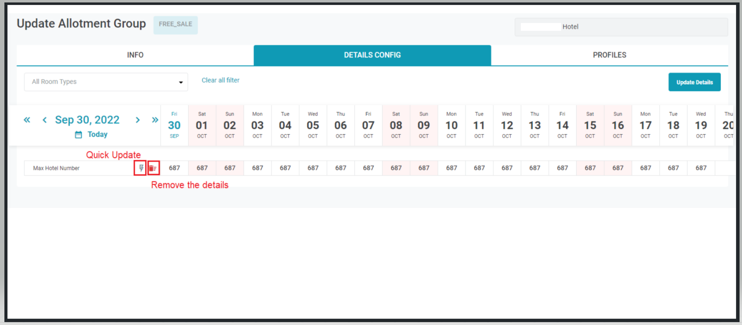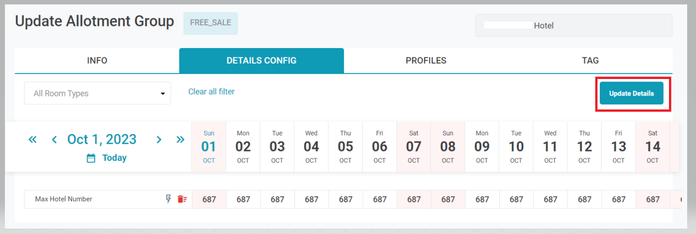 2. [Tab Detail Config] – ការកំណត់រចនាសម្ព័ន្ធលម្អិតសម្រាប់ក្រុមមូលនិធិបន្ទប់ប្រកាសព័ត៌មានលំអិតអំពីចំនួនបន្ទប់សម្រាប់លក់ និងប្រភេទបន្ទប់សម្រាប់លក់ក្នុងរយៈពេលខ្លីជាងក្រុមមូលនិធិបន្ទប់ដែលត្រូវបានអនុញ្ញាតឱ្យលក់៖ ![]()