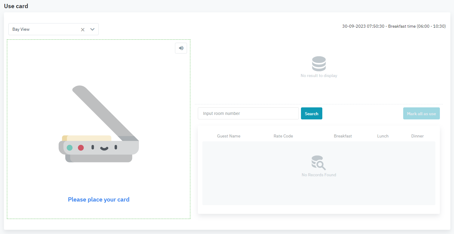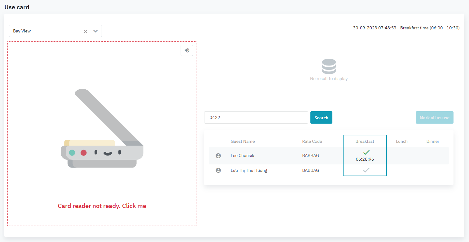 [Please place your card] – អូសកាតដើម្បីពិនិត្យTap កាតចូលអានឬបញ្ចូលលេខបន្ទប់កំពុងនៅ inhouse ដើម្បីពិនិត្យមើលតើភ្ញៀវមានកញ្ចប់សេវាកម្មត្រឹមត្រូវទេ [Result] – លទ្ធផល