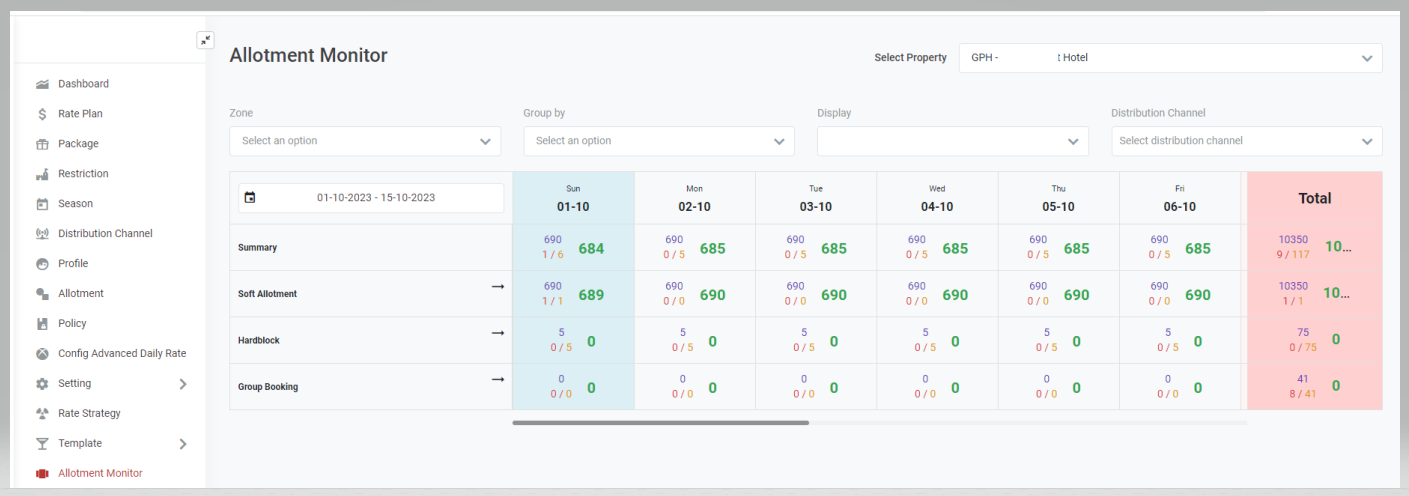 ติดตามจำนวนห้องพักที่มีและยังไม่มีการขายสำหรับ Allotment แต่ละโรงแรม (Allotment) |