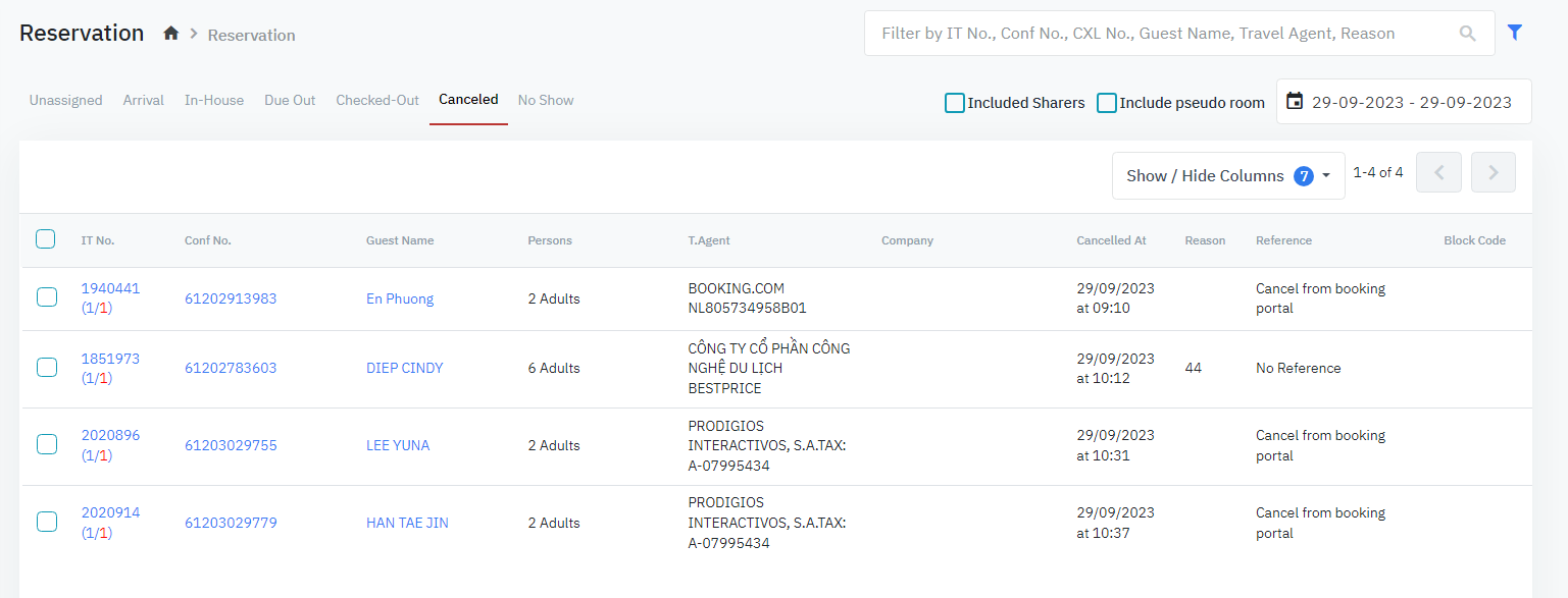 กด “Accept“ เพื่อยืนยันยกเลิกการจอง สถานะของการจองที่ยกเลิกจะเปลี่ยนเป็น “Canceled“.[Tab Canceled] – รายการการจองที่ถูกยกเลิก