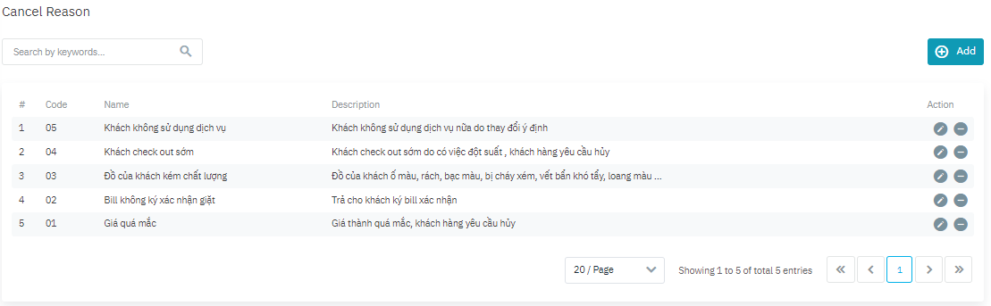 เพิ่มรหัสเหตุผลการยกเลิกใหม่เพิ่มข้อมูลใหม่ด้วยตนเอง: คลิก “Add” เพื่อเพิ่มข้อมูลใหม่และรหัสเหตุผลในการยกเลิก