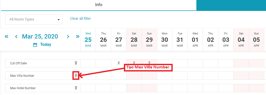 ![]() Sau khi tạo Cut Off Day 4.2. กำหนดหมายเลขประเภทแม็กซ์วิลล่า/โรงแรม/ห้อง มี 2 ชั้น กั้นจำนวนห้องสูงสุดในส่วนนี้: