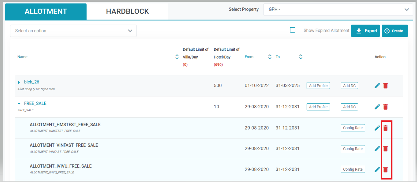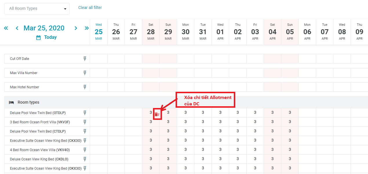 4.3. ลบรายละเอียด Allotment ของช่องทางการขายห้อง