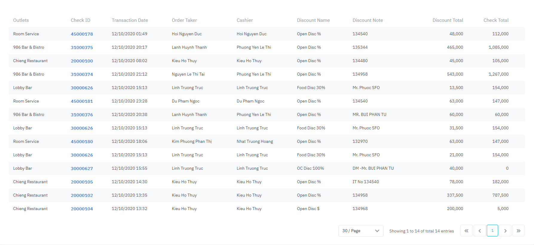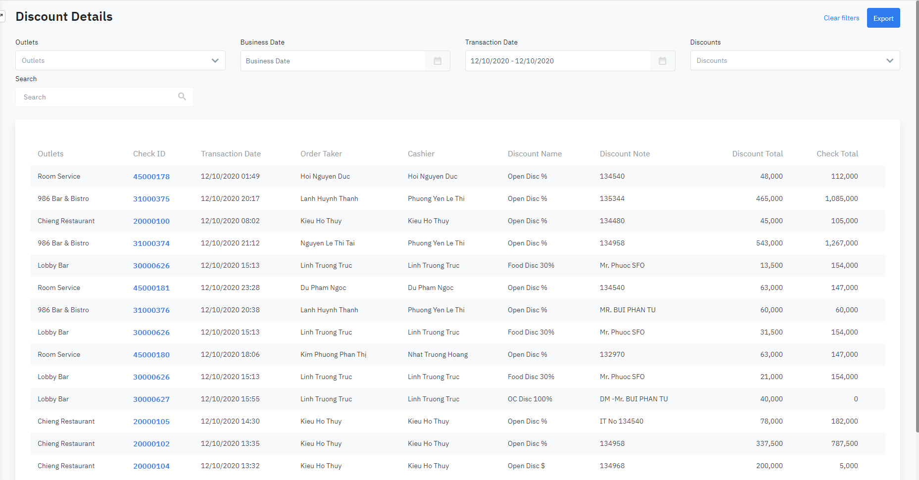 Log in - Food and Beverage - Reports - Discount - Discount Details |