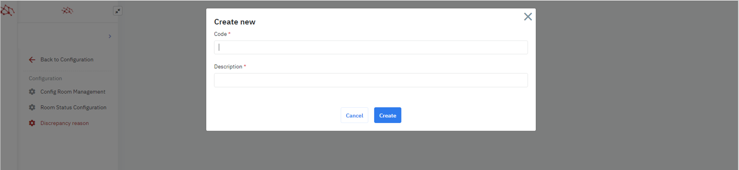 Log in – Room Management – Configuration – Discrepancy Reason |