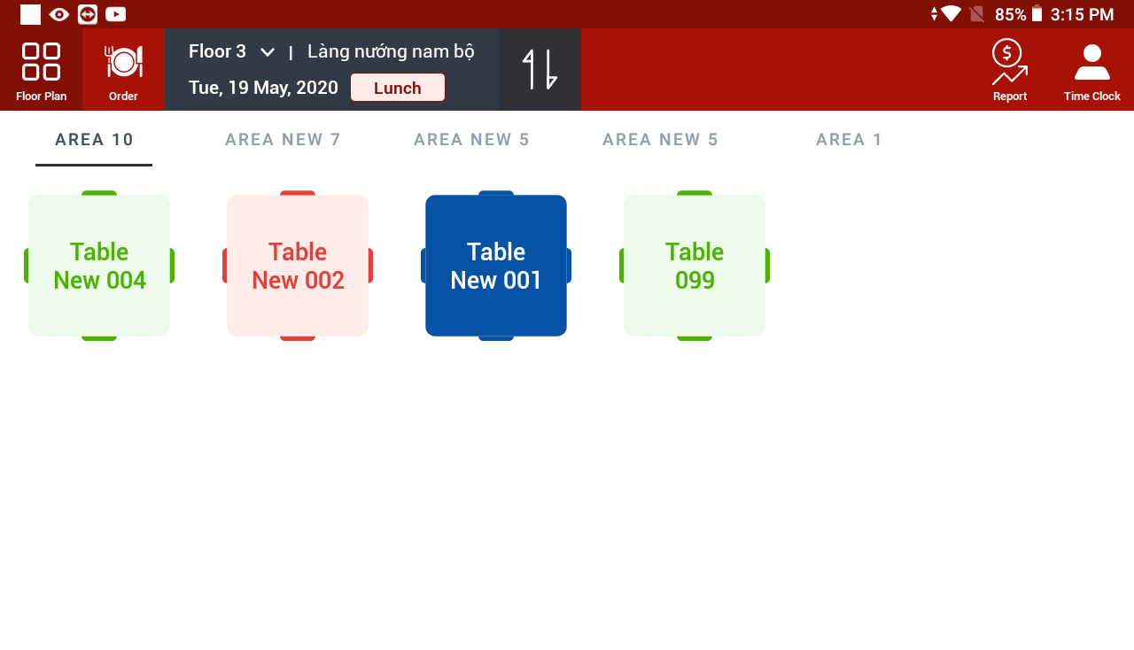หน้าจอประกอบด้วยรายการโต๊ะทั้งหมดที่มีอยู่ในร้านแสดงตาม: