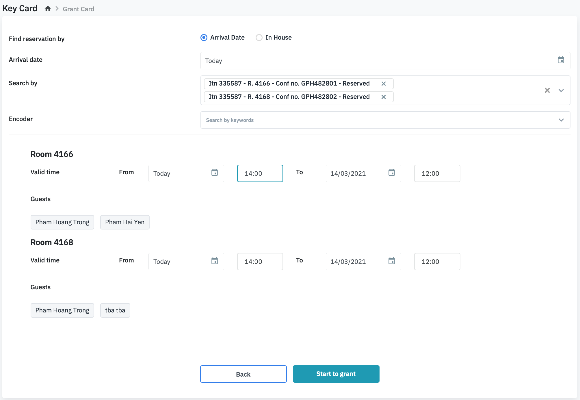 Grant Card (ออกคีย์การ์ดห้องพัก)