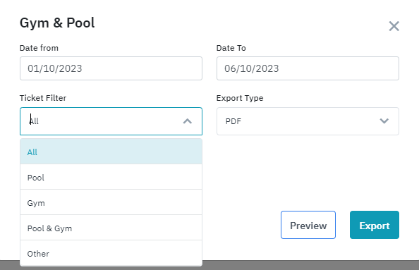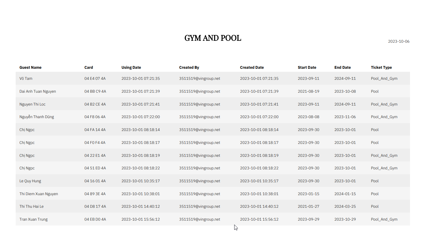 Gym & Pool Report/ รายงานการใช้บริการตั๋วบริการ