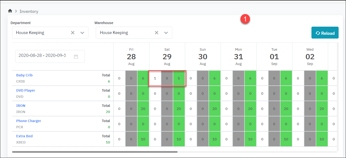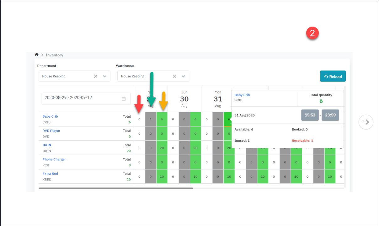 o ลูกศรสีเขียว: ตัวเลข “1” หมายถึง มีเปลเด็ก 1 เปลที่ใช้งานอยู่ (ไม่มีในสต็อก) o ลูกศรสีเหลือง:ตัวเลข “6” หมายความว่า มีเปลเด็กจำนวน 6 เตียงในสต๊อก |
