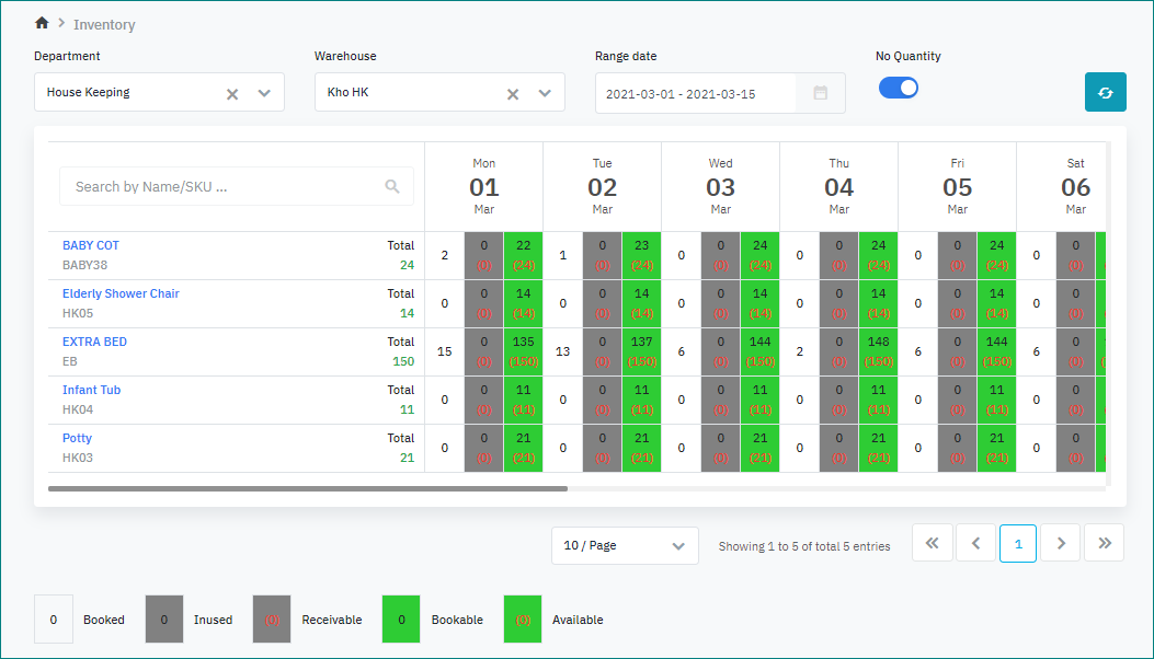 หน้าจอการทำงานช่วยให้ค้นหาและค้นหาสินค้าคงคลังได้อย่างรวดเร็วตามความต้องการของลูกค้า ควบคุมสินค้าคงคลังสำหรับการจองได้อย่างสะดวก |