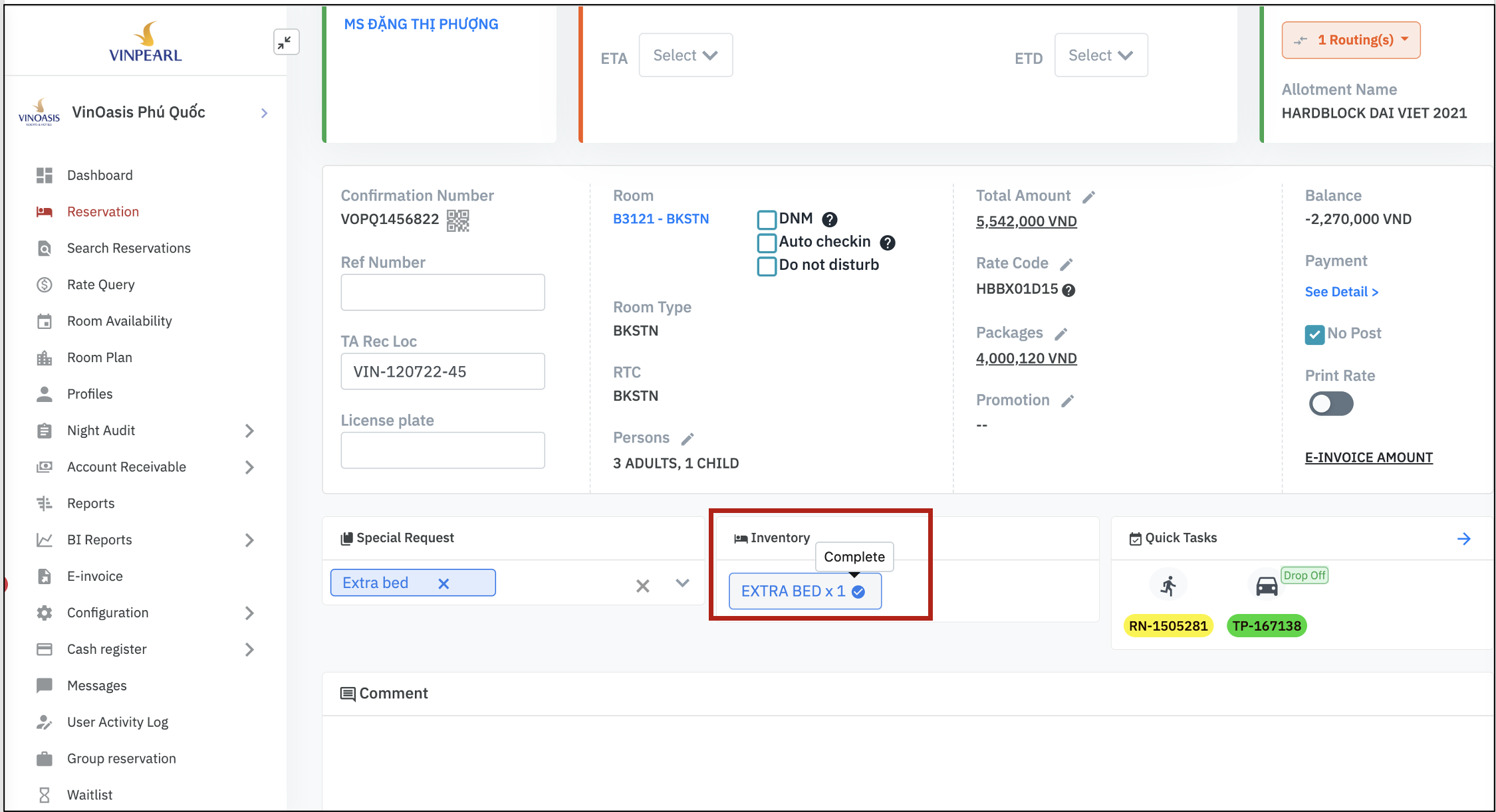 ![]() **การจองทั้งหมดในสถานะจองแล้วสามารถยกเลิกสินค้าคงคลังได้โดยคลิกที่ไอคอน v |