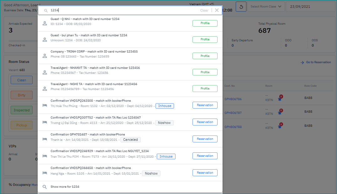 หน้าจอการทำงานช่วยให้สามารถค้นหาและเข้าถึงข้อมูลการจองได้ทุกที่ทุกเวลาในโมดูล Front Office และไม่ขึ้นอยู่กับสถานะของการจอง |