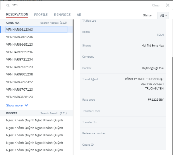 [Results] – ผลการค้นหา[Tab Reservation] - รายการจองที่ตรงตามเกณฑ์การค้นหา![]()