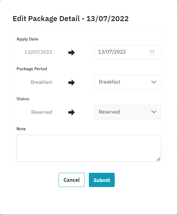 แพ็คเกจบริการอาหารมีเวลาที่แน่นอนขึ้นอยู่กับกฎระเบียบของโรงแรม ในกรณีที่เกินเวลาที่กำหนด ระบบจะโอนมื้ออาหารไปเป็นสถานะที่ไม่ได้ใช้โดยค่าเริ่มต้น ❌ |