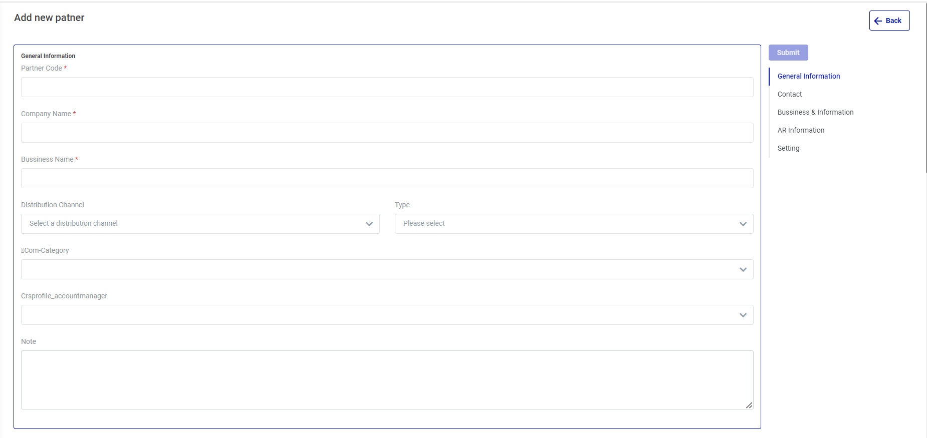 Log in >> Central Profile >> Partners |