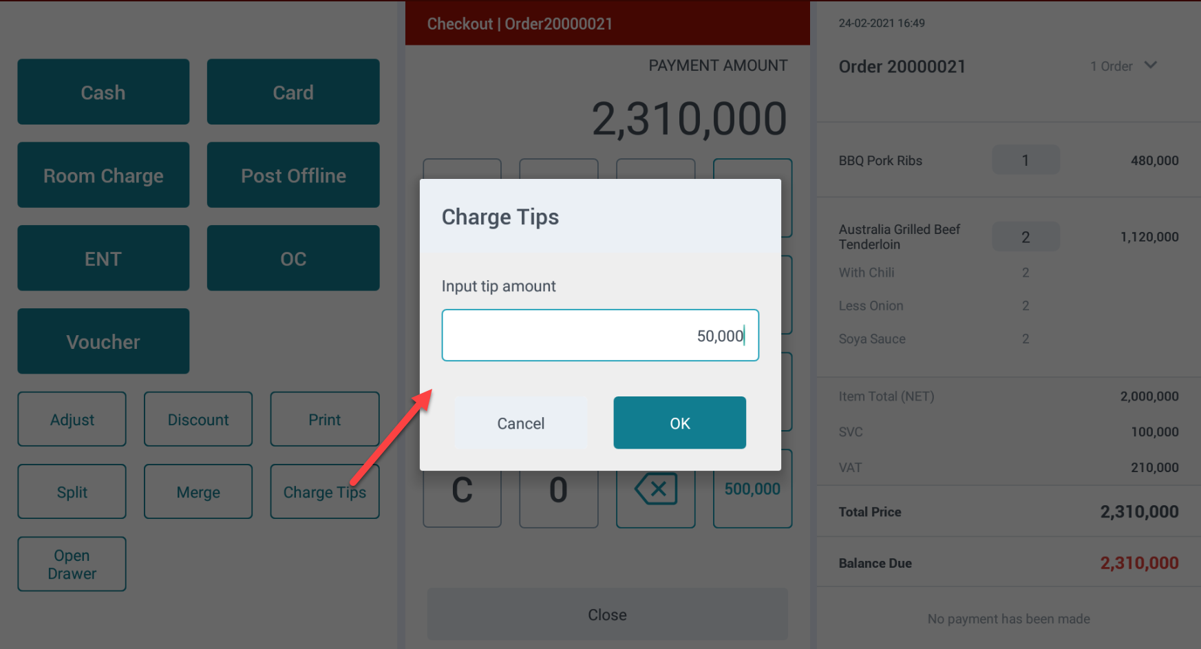 Payment with TIP - บันทึกชำระเงินด้วย TIPของออเดอร์