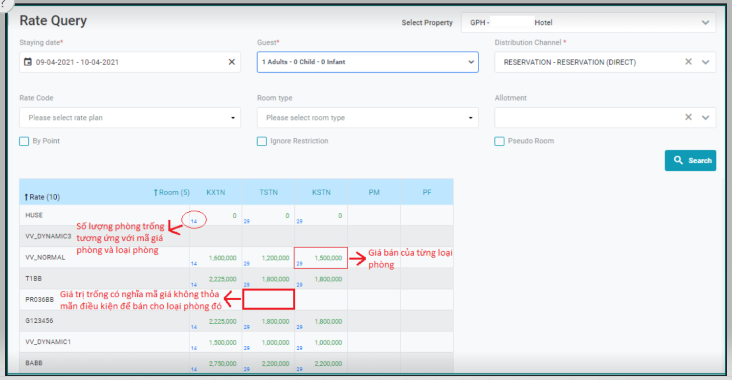 เครื่องมือสอบถามราคาห้องพักแต่ละประเภทและรหัสราคาห้องพักแต่ละช่องทางการขาย (Rate Query) |