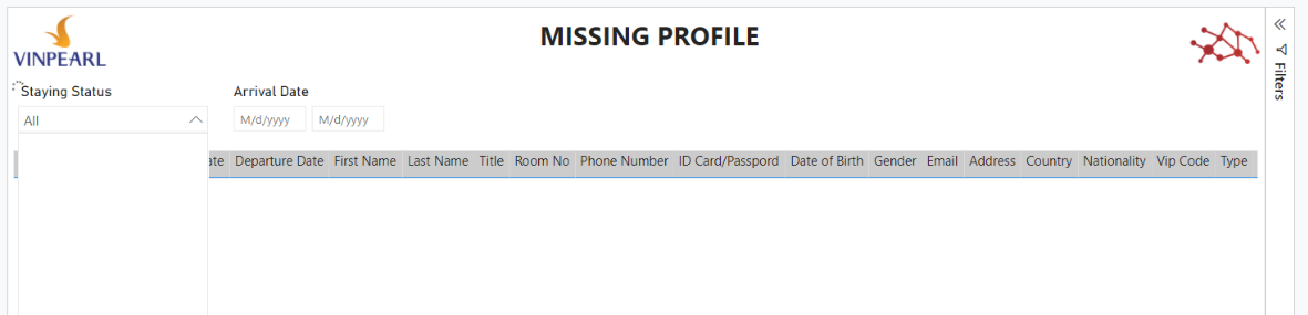 Log in – Front Office – BI Reports – Reservation - Missing Profile |