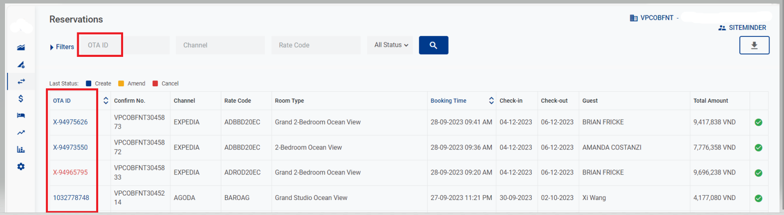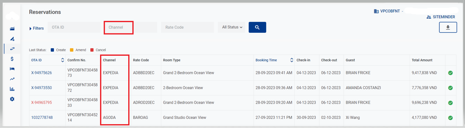 Log in – Channel Manager – เลือกไอคอน Reservations ในเมนู![]() |